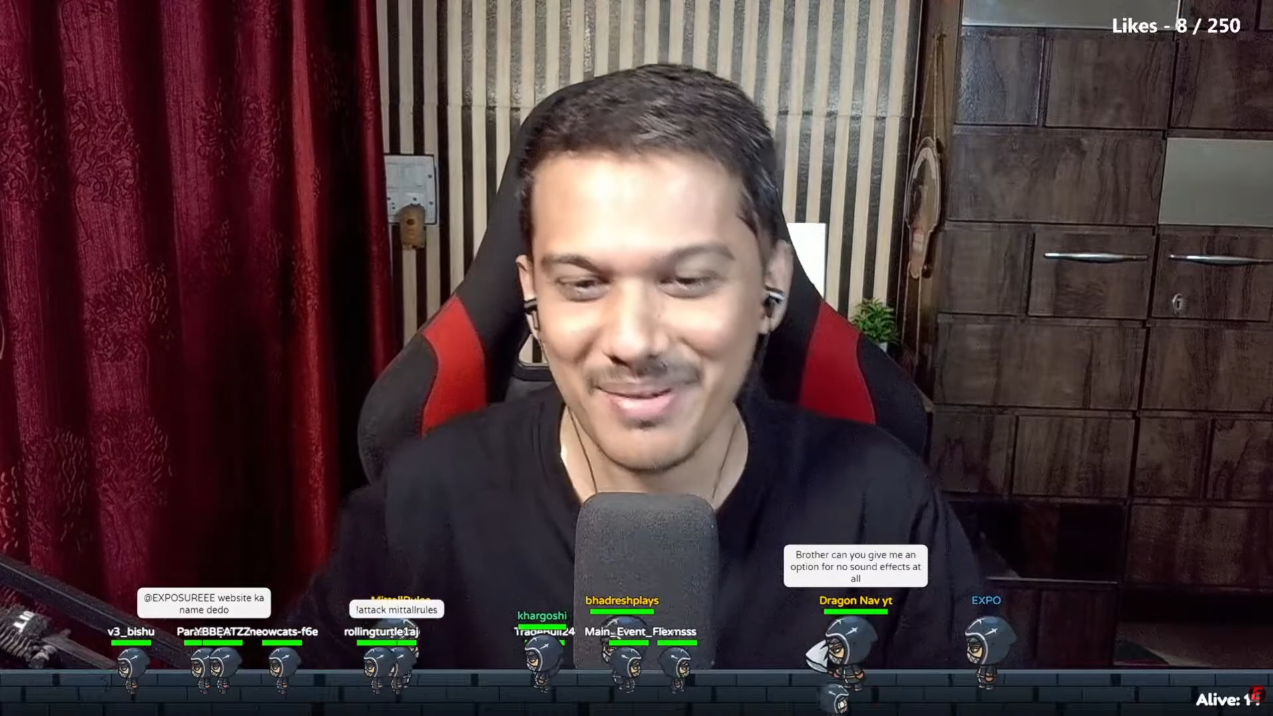 • Interactive Commands: Viewers can type !jump to leap, !hide to vanish in a puff of smoke (strategic stealth!), and !attack @user to attack other chatters.